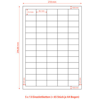 Etiketten Labels selbstklebend weiß 38 x 21.2mm auf DIN A4, 6500 Stk.