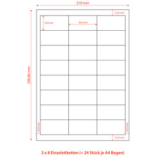 Etiketten Labels selbstklebend weiß 64.6 x 33.8mm auf DIN A4, 2400 Stk.