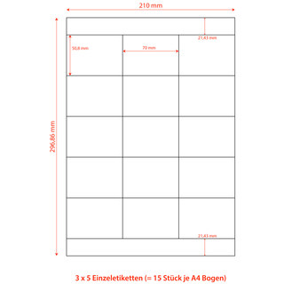 Etiketten Labels selbstklebend weiß 70 x 50.8mm auf DIN A4, 1500 Stk.