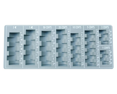 • herausnehmbares Zählbrett  für Münzen: 2 euro (35x),1 euro (35x), 50 cent (35x), 20 cent (40x), 10 cent (40x), 5 cent (50x), 2 cent (20x) und 1 cent (20x)