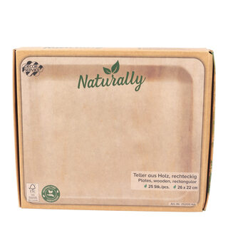 Holzteller Einwegteller aus Pappelholz rechteckig 26x22cm nachhaltig, 25 Stk.