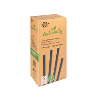 Trinkhalme aus Papier dick, schwarz Ø8mm 25cm, 150 Stk.