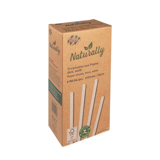 Trinkhalme aus Papier dick weiß Ø8mm 25cm, 150 Stk.