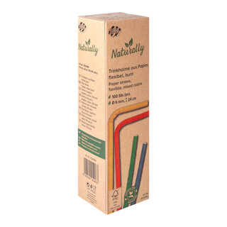 Trinkhalme aus Papier flexibel bunt Ø6mm 24cm, 100 Stk.