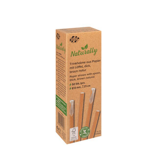 Trinkhalme aus Papier mit Löffel dick, braun natur Ø8mm 21cm, 50 Stk.