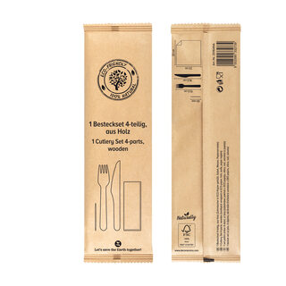 • Besteckset bestehend aus Messer, Gabel, Zahnstocher und Papier-Serviette