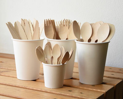 • Umweltfreundliches Einwegbesteck aus Holz