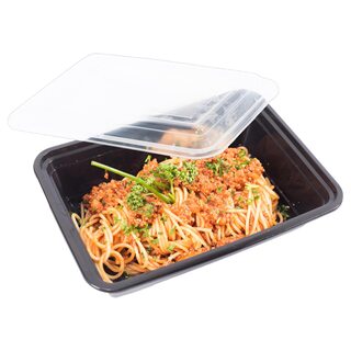 Mehrweg Menüboxen wiederverwendbar PP mit Deckel ungeteilt schwarz 22x15x6.5cm, 50 Stk.