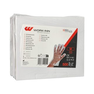 Einweghandschuhe aus PE transparent gehämmert in Spenderkarton Größe M, 500 Stk.