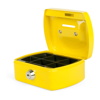 Die Geldkassette kann durch den großzügig ausgefrästen Sparschlitz im Deckel auch als Sparbüchse verwendet werden. Sie können bis zu 4 mm breite Münzen durch die Öffnung einwerfen.