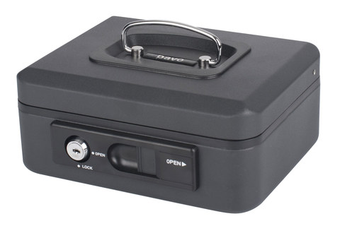 Die Deluxe-Geldkassette zeichnet sich durch bequemes und einfaches Öffnen mit Hilfe eines Pushbuttons aus - beim Druck auf den Pushbutton öffnet sich der Deckel (sofern die Geldkassette nicht mit dem Schlüssel verschlossen wurde). Das macht die Deluxe-Kasse sehr benutzerfreundlich, da man sie mit einer Hand bedienen kann.